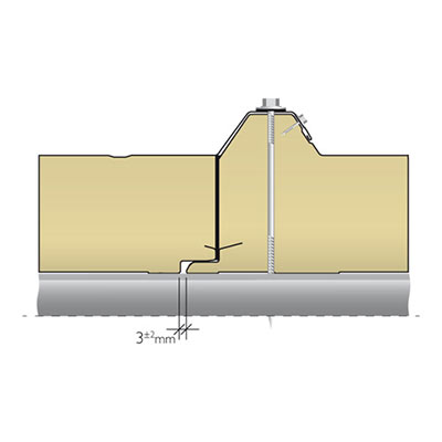 Sandwichplatten fürs Dach mit einem Kern aus Mineralwolle haben eine spezielle Verbindung, die ihre Feuerbeständigkeit erhöht. Die gefräste Wolle an den Stößen verbessert die Wärmedämmung und Dichtigkeit.